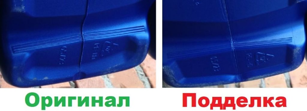 В контрафактных продуктах на дне канистры можно заметить три полоски, расположенные очень близко друг к другу. В оригинальном товаре эти полоски находятся на заметно большем расстоянии друг от друга.