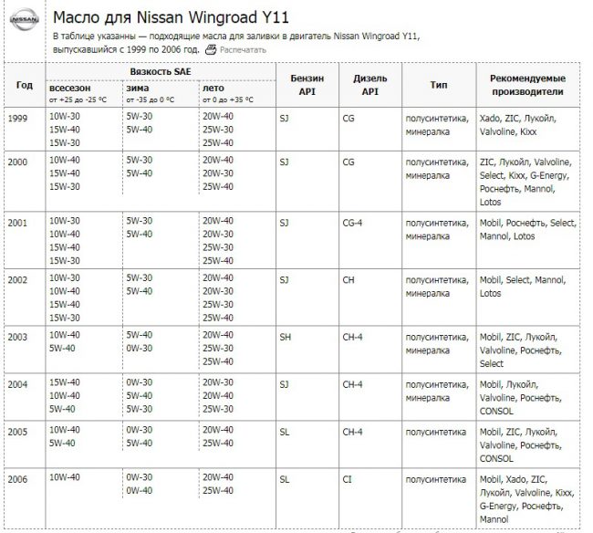 Вот несколько интересных фактов о моторном масле для Nissan Wingroad: