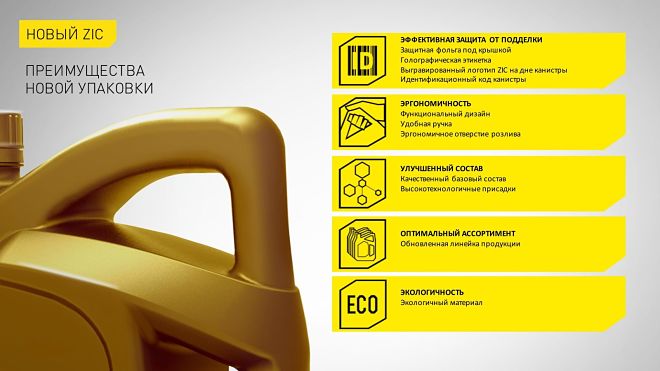 В 2015 году компания ZIC обновила свой бренд, что привело к изменениям в формулировках некоторых масел. Некоторые продукты были заменены новыми, изменились названия и дизайн упаковки. Однако одно осталось неизменным: высокое качество продукции. Это достигается благодаря использованию только первоклассных базовых масел и современных сбалансированных присадок.