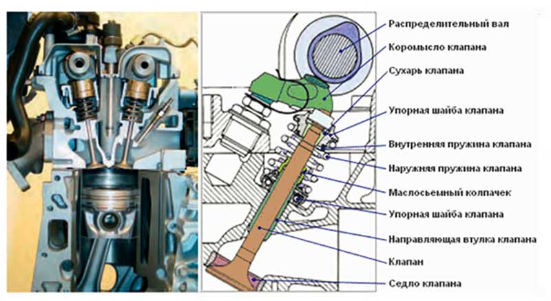 - Передают тепло от сильно нагревающейся клапанной чашки в камере сгорания алюминиевому сплаву головки цилиндров.