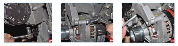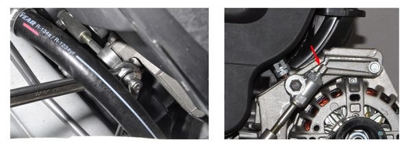 Этим же ключом отвернуть гайку и вытащить болт верхнего крепления генератора.