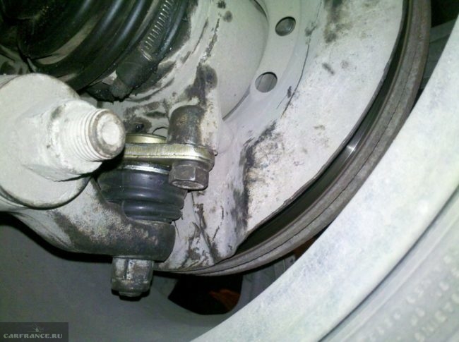 При нарушении целостности шаровой положение колес по отношению друг к другу меняется. Когда водитель нажимает на тормоз, машину ведет в сторону поврежденной опоры. Помимо этого, при торможении можно услышать щелчки.