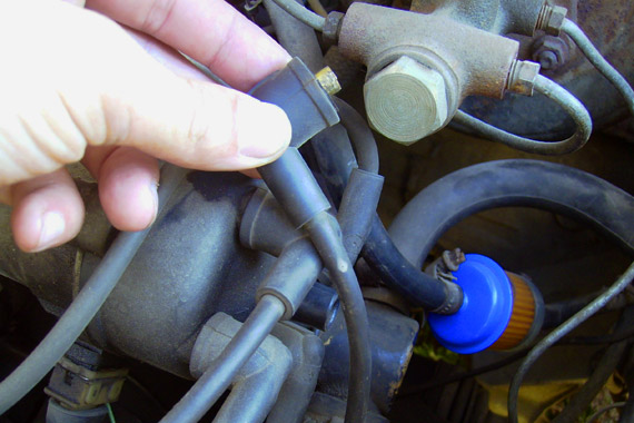 Для проверки катушки зажигания необходимо извлечь центральный провод из крышки распределителя-прерывателя, который идет от катушки.