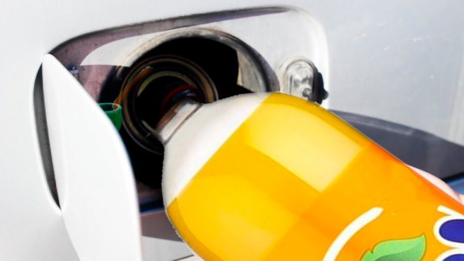 Из бензобака необходимо слить весь бензин. Отсоединить бензобак от остальной топливной системы и залить в него газировку.