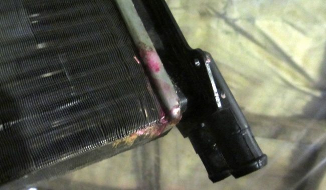 | Трещина в радиаторе печки | Лужи антифриза под ковриками, запотевание стекол, снижение уровня антифриза, сладковатый запах в салоне | Замена радиатора печки |