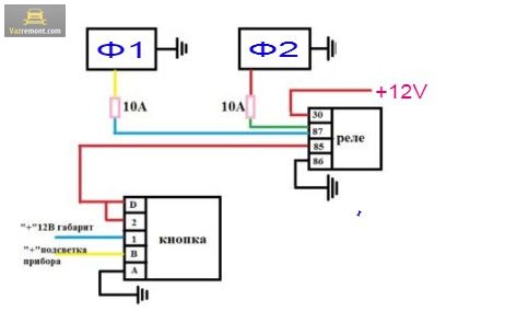 Перед тем как углубиться в анализ всех возможных причин, полезно ознакомиться с принципиальной схемой подключения противотуманных фар к бортовой электросистеме автомобиля.