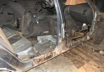 Таким образом, остается только металлическая часть. Все пластиковые и легковоспламеняющиеся элементы должны быть удалены, чтобы не мешать работе. Стекла рекомендуется заклеить бумагой изнутри, чтобы пыль от болгарки не оседала на них. Также желательно обернуть весь салон полиэтиленовой пленкой.