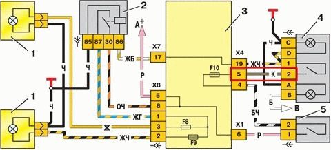 - К2 — отвечает за работоспособность световой сигнализации, а также поворотников;