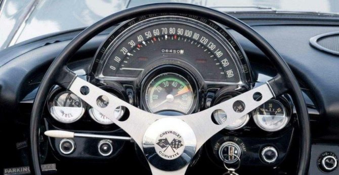 Глядя на эту панель приборов, сложно представить, что она была разработана в шестидесятых. Внешне довольно стильно, в ней присутствует дух современности, несмотря на то, что прошло много лет. Даже датчики переместились на водительскую сторону, над рулевой колонкой нашлось место круглому тахометру. На панели есть часы и радио, они размещены на центральной консоли. Со стороны пассажира имелась глубокая выемка с безопасной ручкой. В число опций входили отопитель, электрические стеклоподъемники, радиоприемник, ремни безопасности. По-моему, все необходимое есть и на своих местах.