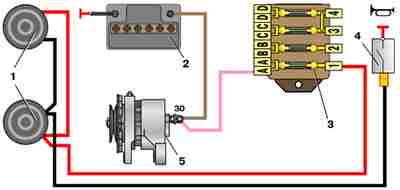 Схема подключения звукового сигнала для моделей ВАЗ 2101, 2102, 2103 и 2106 (после 1993 года), без реле: