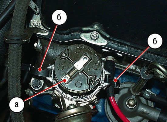 - После завершения регулировки отметьте положение корпуса трамблера относительно блока с помощью риски или краски.