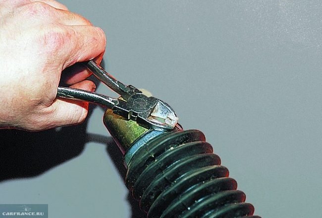 Срезаем хомуты пыльника при помощи кусачек