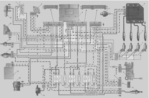 Но это — только основные компоненты системы, что касается полной электросхемы, то она включает в себя различны узлы и системы: