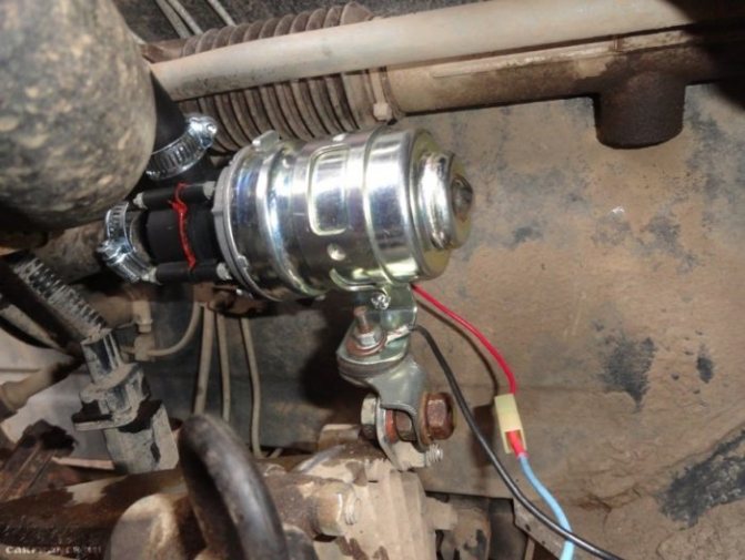 - Дополнительную электропомпу прикрепить к выбранному заранее месту под капотом автомобиля (указаны выше) с помощью специального крепежа.