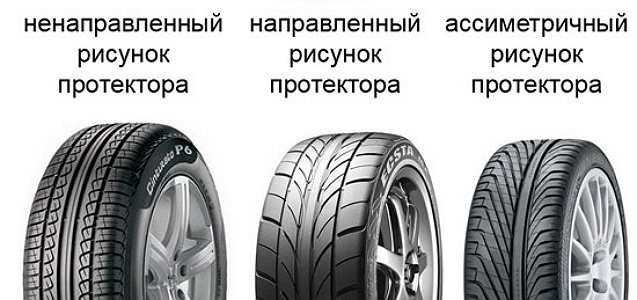 По рисунку протектора различают шины с ассиметричным, симметричным и направленным рисунками.