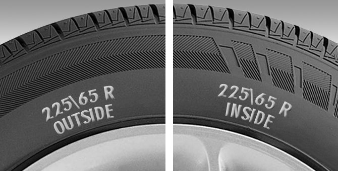 Направленные покрышки имеют строго определенное направление вращения, на что указывает стрелка на боковой поверхности изделия и надпись ROTATION.