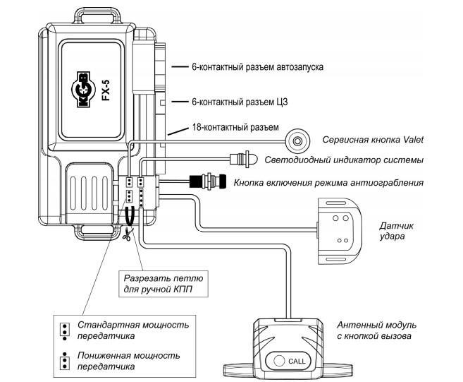 Центральный блок и другие компоненты сигнализации подключайте к разъемам кабелей только после завершения монтажа. Монтаж сигнализации производите в соответствии со схемой подключения.