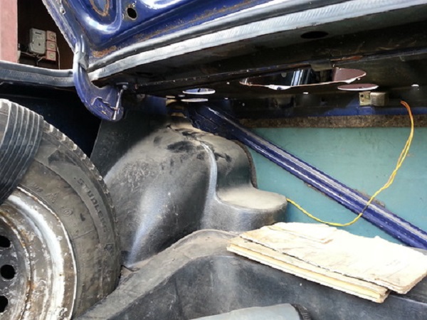Затем найдите заводское отверстие в боковой стенке кузова ВАЗ 2106. Расширьте это отверстие до размера болта с резьбой на «10».