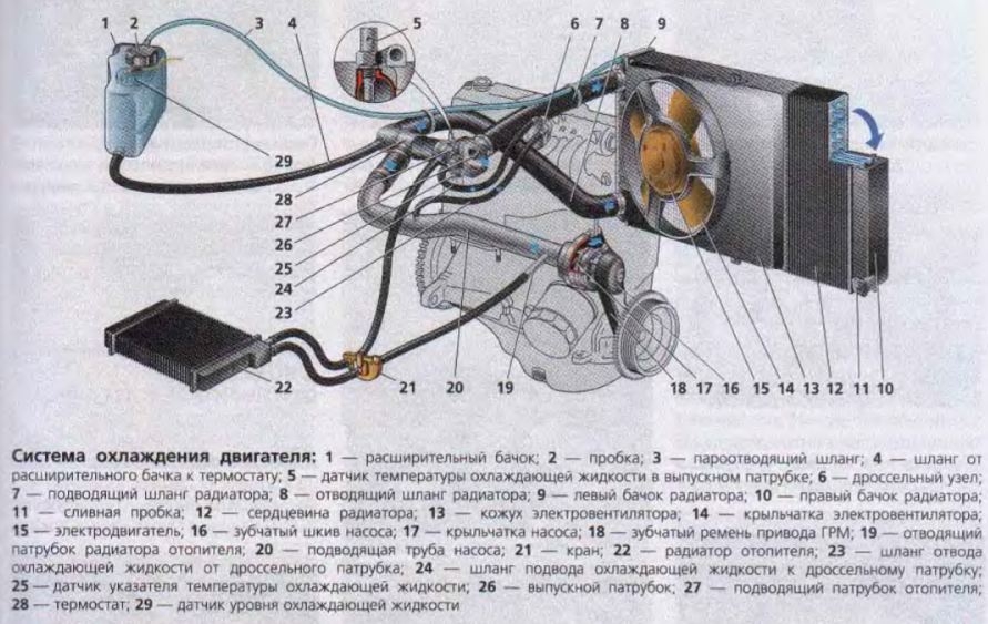 Система охлаждения инжекторного двигателя на ВАЗ 2114 (схема)