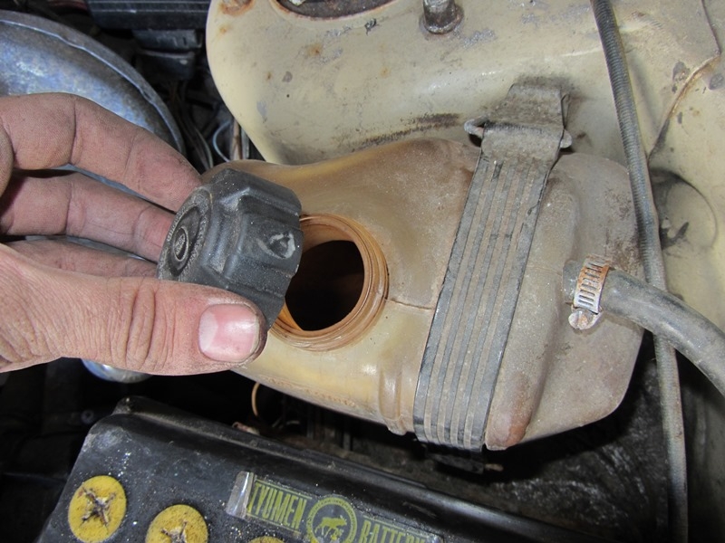- Снимите заглушку с расширительного бачка, а также заглушки с цилиндра и радиатора.