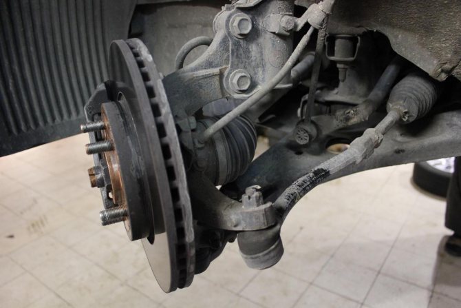 Передняя правая или левая сторона машины ставится на упор под рычаг подвески, чтобы ШРУС находился в горизонтальном положении. Затем сравнивают гул с обеих сторон.