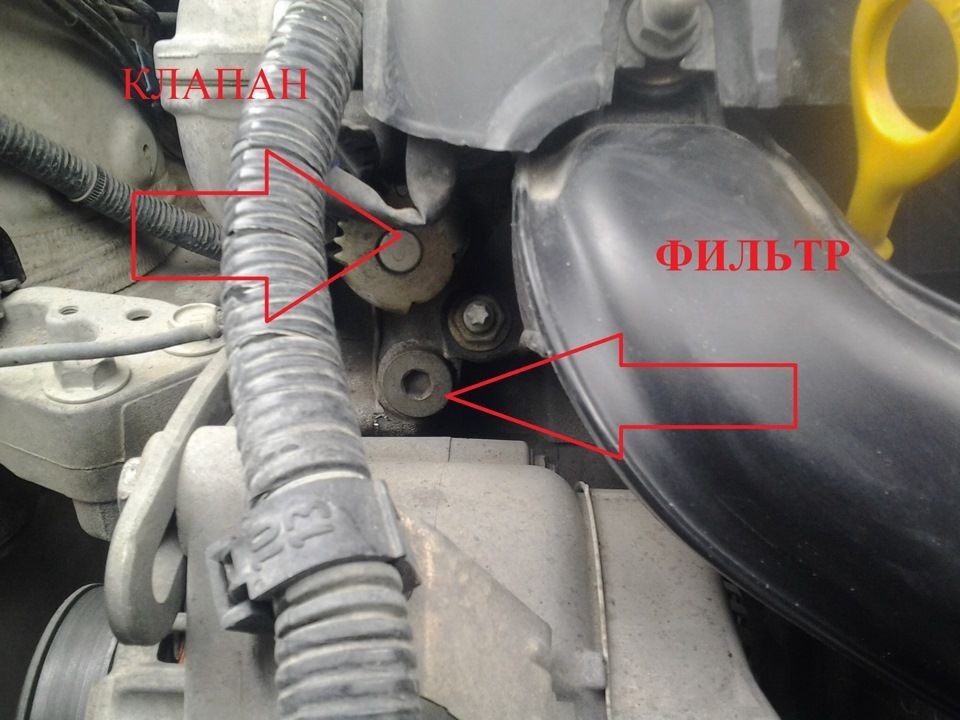 - Для более тщательной очистки можно снять фильтр системы Vvti. Этот фильтр находится под клапаном и выглядит как заглушка с отверстием для шестигранника, но этот шаг не является обязательным.