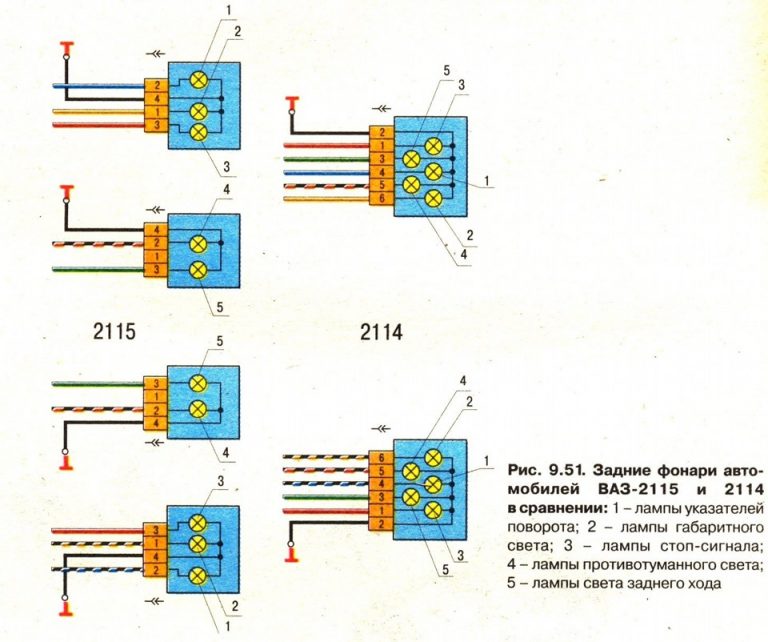 Задние фонари Ваз 2114. Замена, схема, подключение