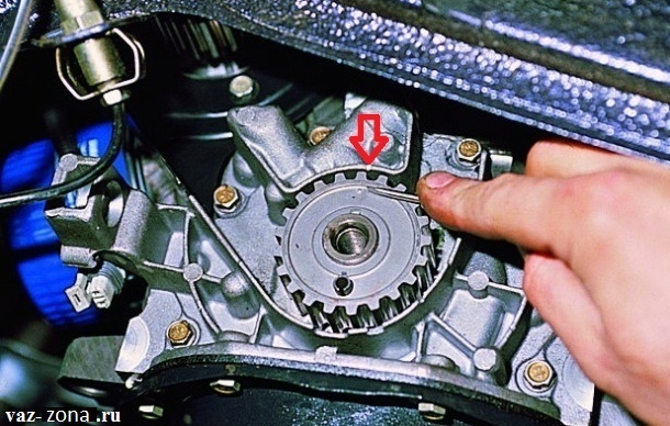 После того как вы натянули ремень, прокрутите коленвал на два полных оборота и проверьте, совпадают ли метки на шестернях. Если метки совпали, можно собирать все в обратном порядке.