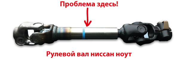 Наиболее распространенной причиной постукивания в руле Ноута является именно люфт в шлицах телескопического механизма рулевого вала. Добраться до этих шлицов без механического вмешательства невозможно, так как трубка завальцована. Некоторые владельцы Енотов прибегают к распилу трубки болгаркой, чтобы смазать шлицы. Они аккуратно делают пропил, заполняют его густой смазкой и затем стягивают трубку хомутами. Однако я бы не рекомендовал этот метод, ведь это касается нашей безопасности! Телескопический механизм рулевого вала предназначен для того, чтобы при лобовом столкновении вал складывался, благодаря телескопической конструкции, и рулевое колесо не причиняло травм водителю.