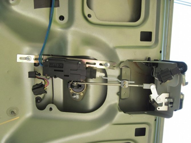 - Из подготовленного комплекта с электрическим приводом изготовить крюк диаметром около 20 мм. Эту деталь зацепить за винт замка и рейку электропровода. Реле установить на багажник используя болты-саморезы.