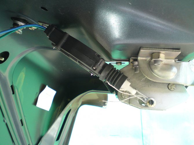 - Выверните два болта и тем самым освободите устройство с автомобиля, но только при выкручивании учитывайте то, что под одним из них располагаются несколько клемм, одна из которых идёт на редуктор стеклоочистителя двери, а другая на стоп-сигнал.