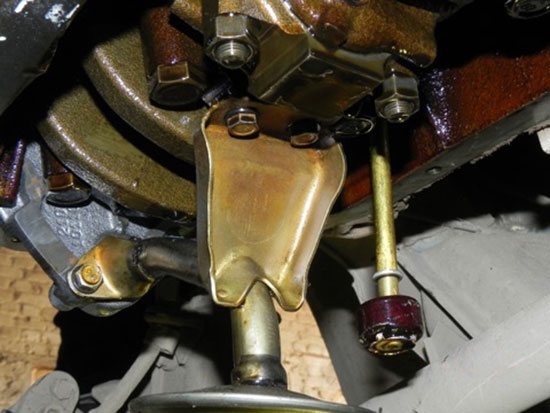- Перед вам находится коленвал и маслосборник, где располагается искомый насос.