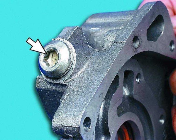 - После этого аккуратно снимают болты крепления к масляному насосу.