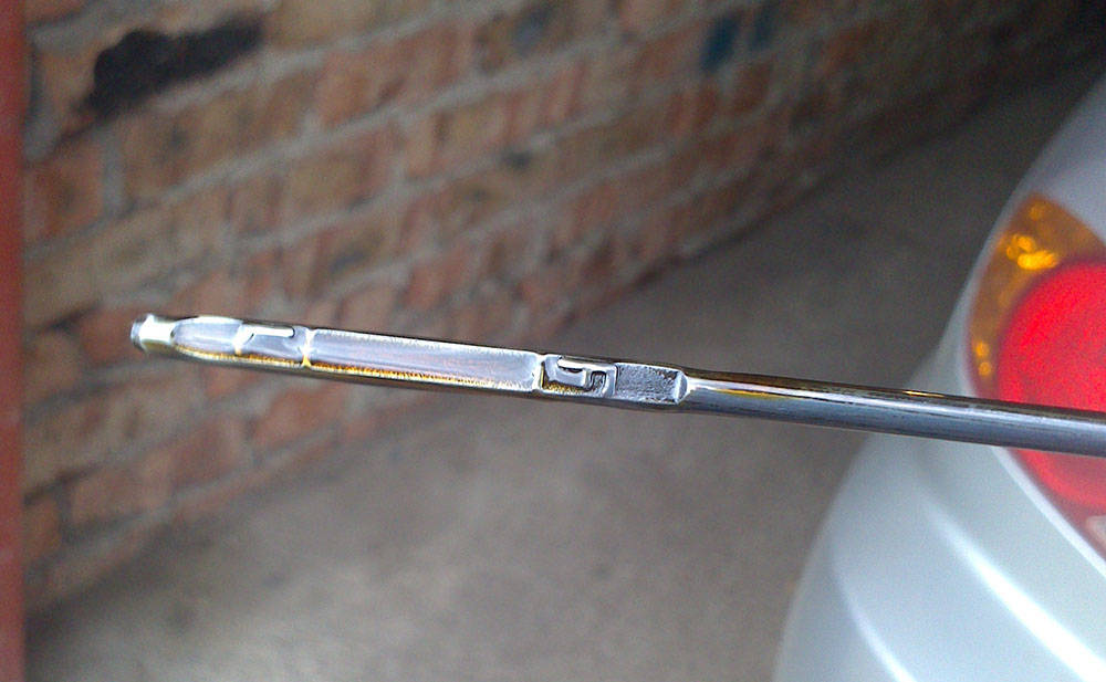 Затем залейте новое масло через контрольный проём, проверяя уровень с помощью щупа.