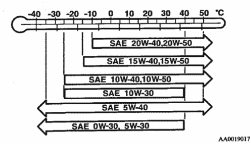 В соответствии с данной схемой, в зависимости от температуры окружающей среды, производитель рекомендует использовать следующие типы моторных масел: