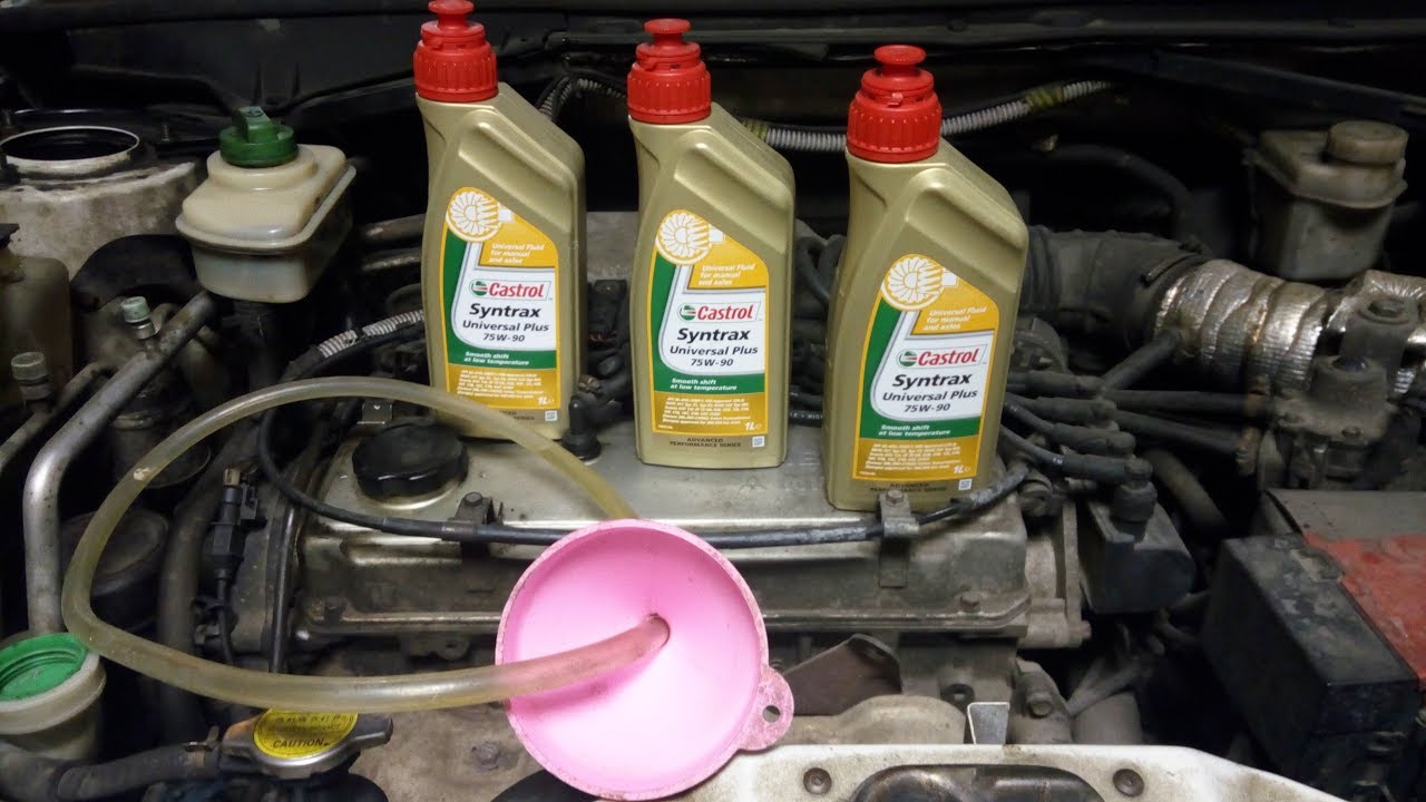 - С помощью специального шприца с тонким шлангом залейте техническую жидкость в горловину контрольного отверстия до тех пор, пока она не начнет переливаться;
