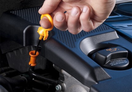 Проверьте уровень масла с помощью щупа. Он должен находиться на 2/3 отметки, ближе к максимальному значению.