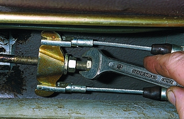 - Удлинение троса подразумевает его ослабление. Для этого нужно открутить контргайку. При натяжении троса, наоборот, контргайку следует закручивать.