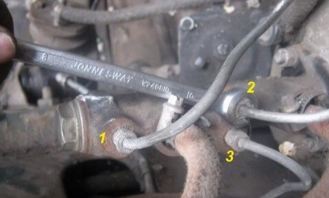 Сначала откручиваем по четыре трубки с обеих сторон (две слева и две справа). Рекомендуется использовать специальный трубный ключ, так как рожковый ключ может повредить грани гаек;