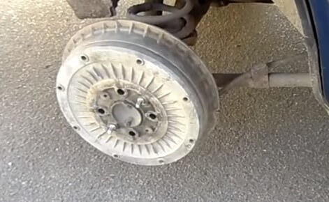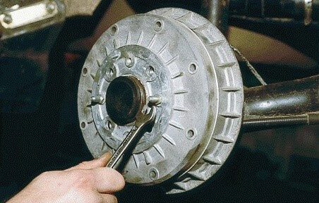 Снимите тормозной барабан, открутив две направляющие комбинированным ключом на 12;