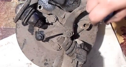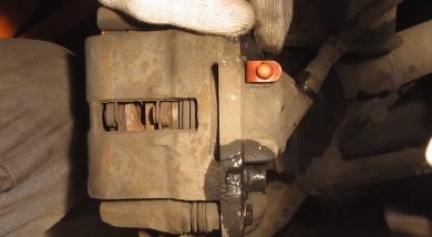 Тормозные цилиндры фиксируются на скобе в направляющих, и их можно извлечь либо с помощью монтировки, либо аккуратно постукивая молотком;