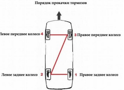 После замены любого тормозного цилиндра в транспортном средстве необходимо провести прокачку тормозов. Процедуру прокачки на любом автомобиле начинают с колеса, расположенного наибольшей удаленности от главного тормозного цилиндра (ГТЦ). В автомобилях марки ВАЗ прокачка тормозов начинается с заднего правого колеса, затем переходят к заднему левому, после этого прокачивают правое переднее колесо, а завершают процесс прокачкой переднего левого колеса. Если педаль тормоза начинает работать только в самом конце хода или ощущается жесткость, процедуру прокачки следует повторить, следуя той же последовательности.