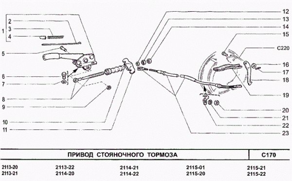 Устройство ручного тормоза на автомобиле ВАЗ-2110.