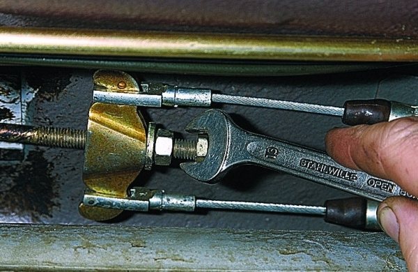 - Удлинение троса — это его расслабление. Для этого откручивается контргайка. При затяжке троса контргайку нужно наоборот закручивать.