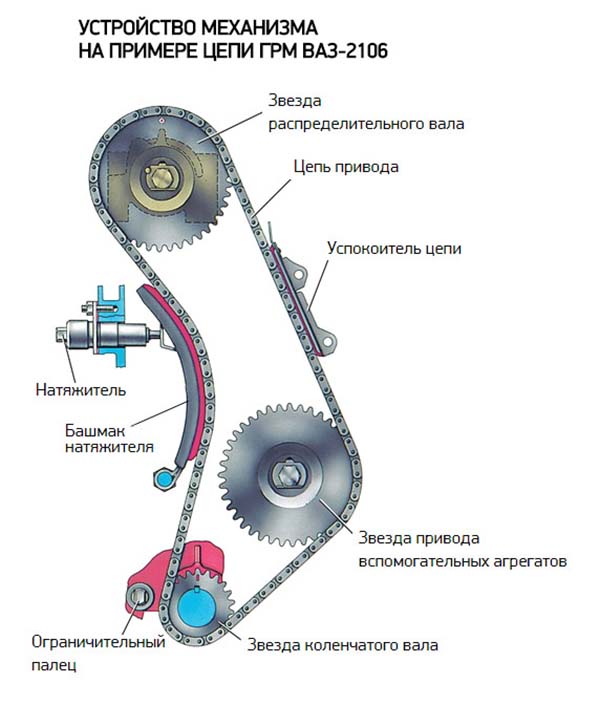 Главная задача, которую выполняет эта деталь, заключается в предотвращении избыточного колебания цепи ГРМ при работе мотора. Такая важная деталь, как успокоитель цепи, присутствует не на всех видах автомобилей, а только на тех, у которых ГРМ оснащен цепным приводом. На автомобилях классического семейства Лада, ГРМ оснащен цепным приводом, поэтому и на инжекторных, и карбюраторных моторах имеется успокоитель цепи.