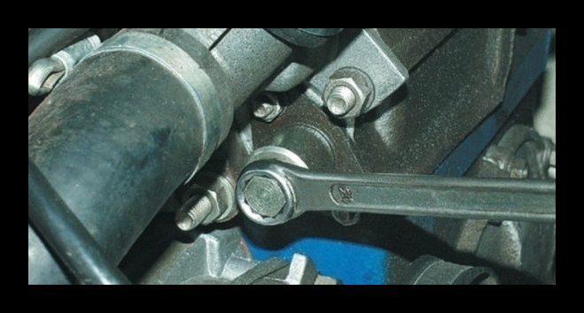 - Убедившись в том, что крючок надежно фиксирует извлекаемую деталь, необходимо вывинтить ее крепления в виде двух болтов. Эти болты имеют разную длину, поэтому важно запомнить их расположение.